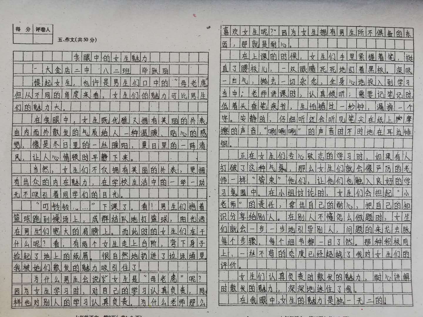 我眼中的女生魅力 热495 类别:记叙 发表时间:2018-10-01 19:48 已有 496 次阅读 指导老师:刁习羽 所属学校:登封市大金店镇第二初级中学