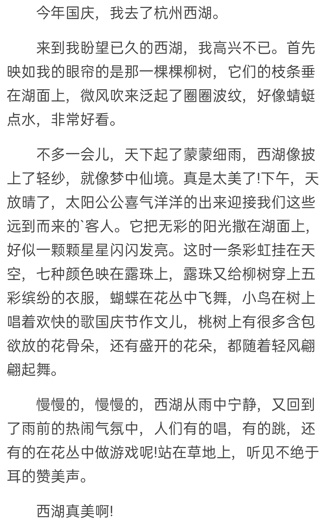 假期之旅 热856 类别:绘景 发表时间:2021-10-05 09:26 已有 857 次阅读 指导老师:刘倩倩 所属学校:郑州经济技术开发区外国语学校