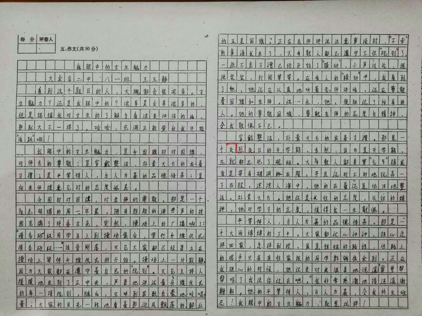 我眼中的女生魅力 热327 类别:记叙 发表时间:2018-09-30 21:14 已有 328 次阅读 指导老师:刁习羽 所属学校:登封市大金店镇第二初级中学