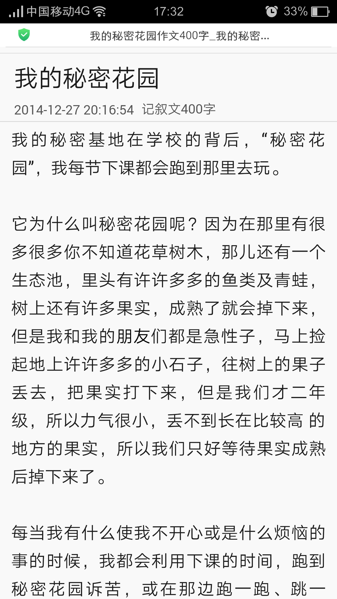 我的秘密花园 热542 类别:记叙 发表时间:2018-10-07 17:35 已有 543 次阅读 指导老师:陈丹丹 所属学校:登封市大金店镇中心小学