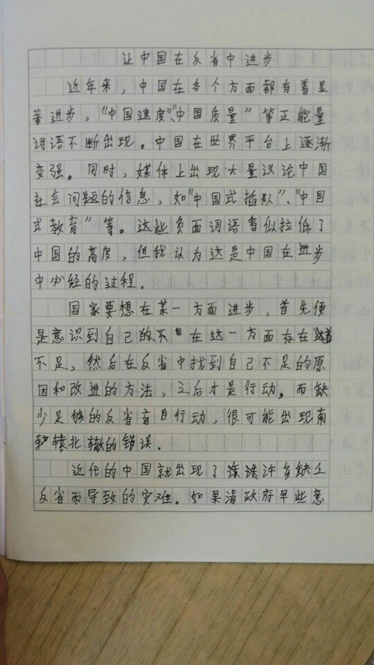 让中国在反省中进步 热328 类别:议论 发表时间:2018-10-02 10:42 已有 329 次阅读 指导老师:李艳 所属学校:郑州市第九中学