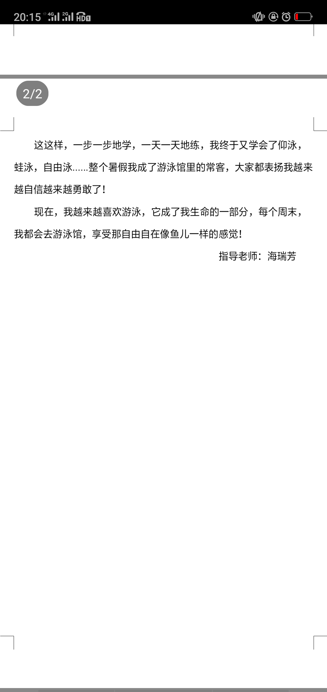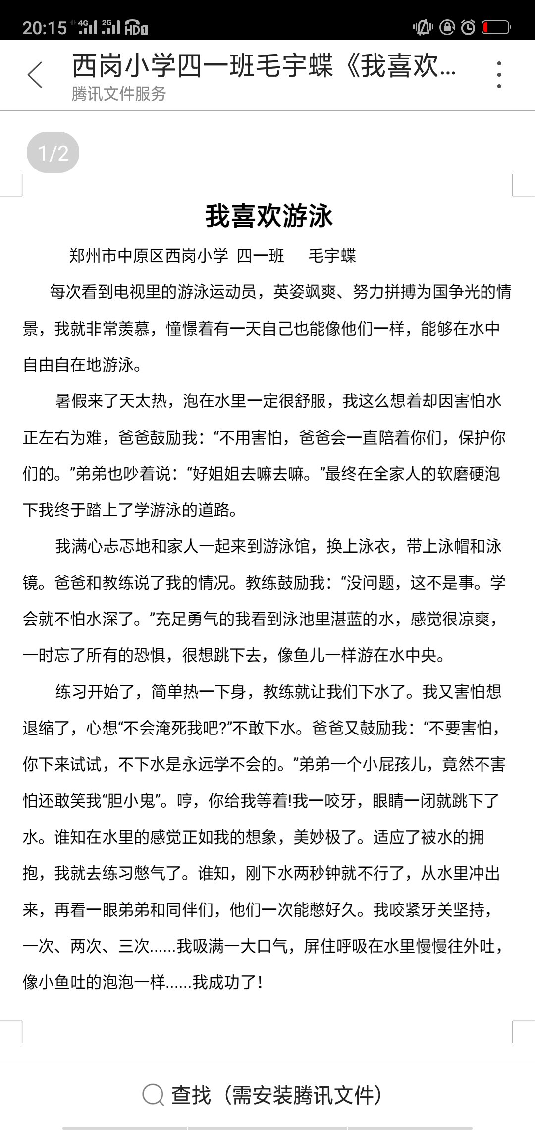 我喜欢游泳 热560 类别:叙事 发表时间:2018-10-08 20:19 已有 561 次阅读 指导老师:海瑞芳 所属学校:郑州市中原区西岗小学