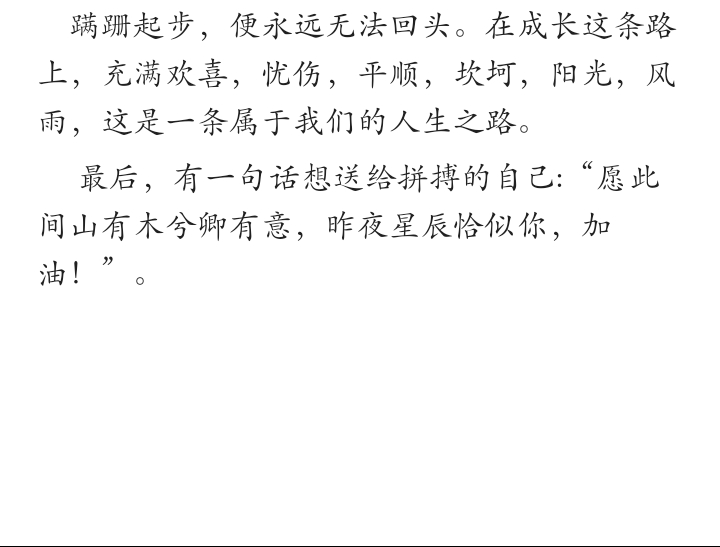 成长路上 热714 类别:原创 发表时间:2018-10-07 11:48 已有 713 次阅读 指导老师:杨鹏飞 所属学校:郑州市第三十一中学