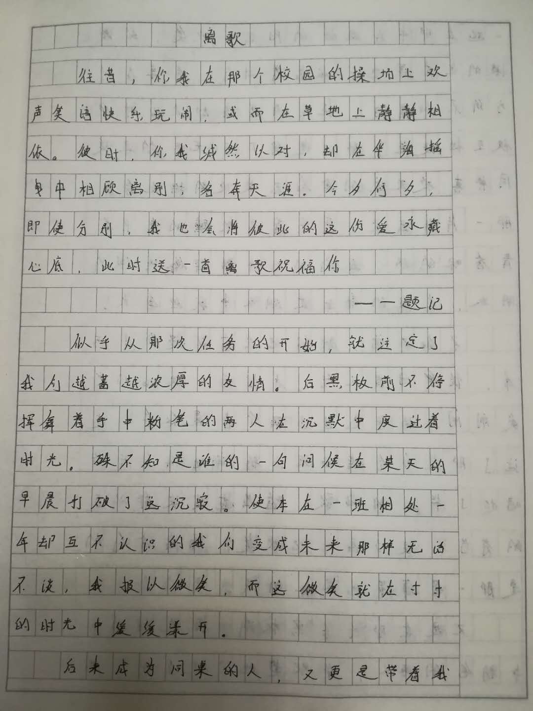 离歌 热272 类别:抒情 发表时间:2018-10-06 22:29 已有 273 次阅读 指导老师:闫丽 所属学校:郑州市第九中学