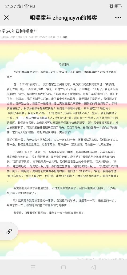 咀嚼童年 热367 类别:记叙 发表时间:2021-08-24 21:39 已有 368 次阅读 指导老师:白占华 所属学校:中牟县城东路小学