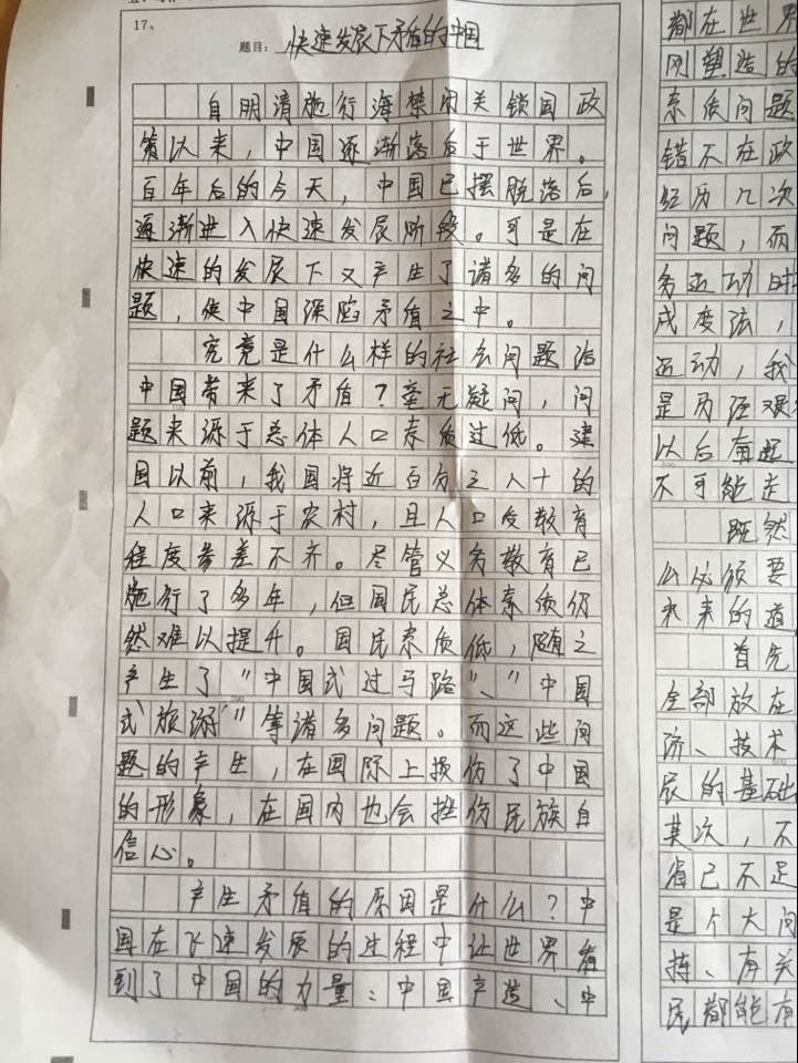 快速发展下矛盾的中国 热847 类别:议论 发表时间:2018-10-05 10:18 已有 848 次阅读 指导老师:池渊 所属学校:郑州市第九中学