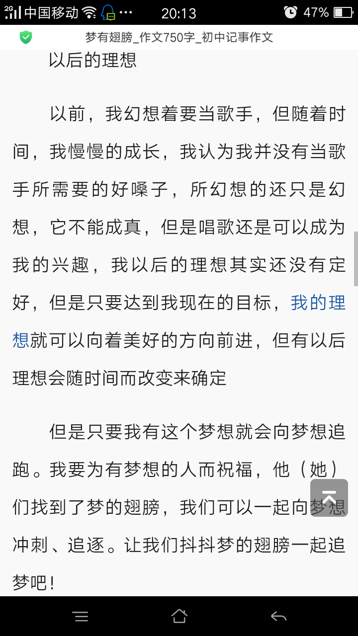梦有翅膀 热384 类别:记叙 发表时间:2018-10-05 20:16 已有 385 次阅读 指导老师:张春风 所属学校:登封市大金店梅村初中