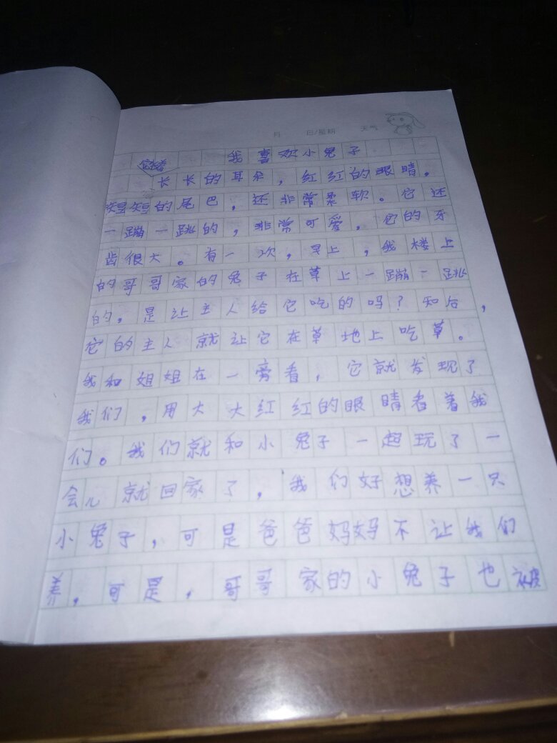 我喜欢小兔子 热423 类别:状物 发表时间:2018-10-08 09:17 已有 424 次阅读 指导老师:师妩彦 所属学校:荥阳市第九小学