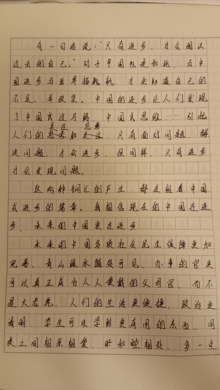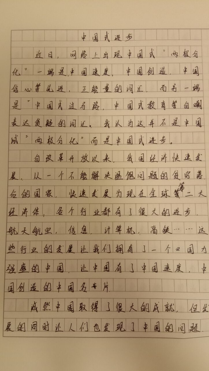中国式进步 热230 类别:议论 发表时间:2018-10-06 20:05 已有 231 次阅读 指导老师:李素芳 所属学校:郑州市第九中学