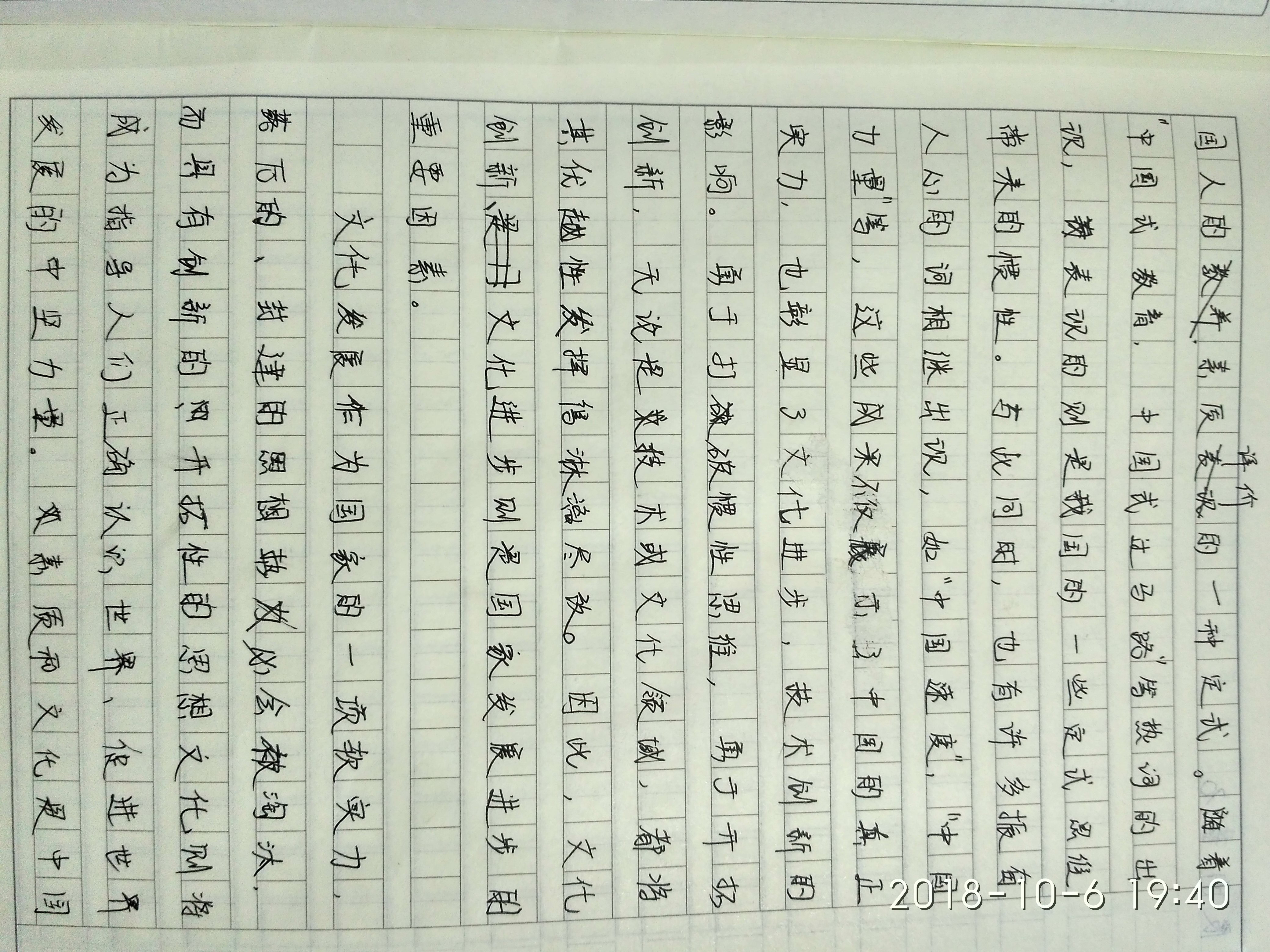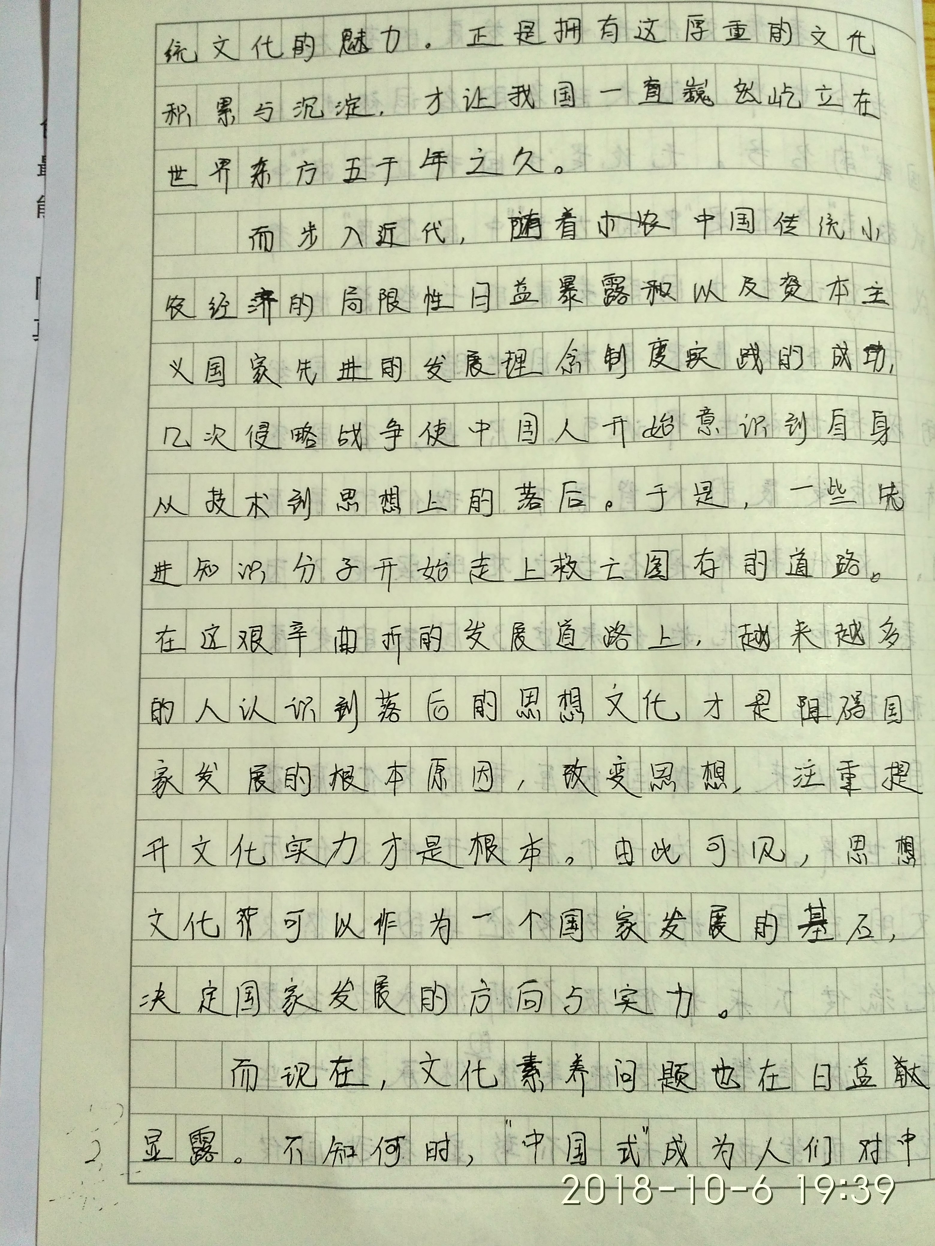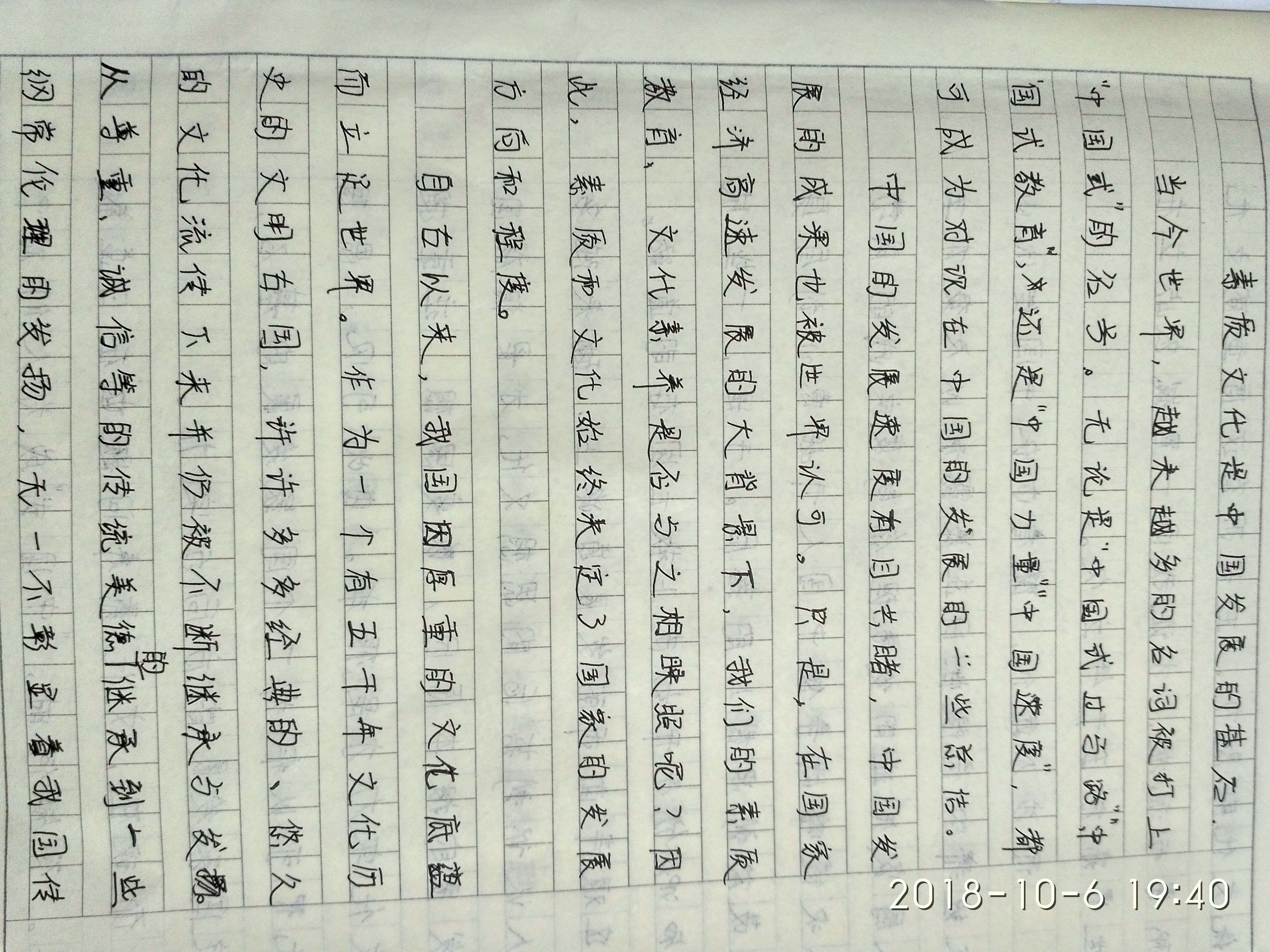 素质文化引领中国发展 热434 类别:议论 发表时间:2018-10-06 19:41 已有 435 次阅读 指导老师:殷蕾 所属学校:郑州市第九中学