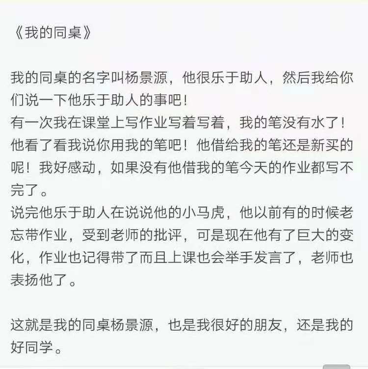 我的同桌 热509 类别:写人 发表时间:2018-10-07 11:36 已有 510 次阅读 指导老师:魏春霞 所属学校:郑州市中原区伏牛路小学