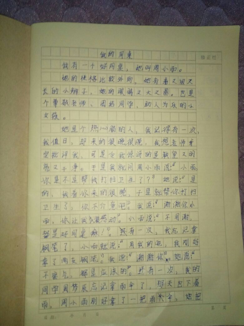 我的同桌 热831 类别:写人 发表时间:2018-10-07 13:07 已有 832 次阅读 指导老师:侯秋辉 所属学校:荥阳市第九小学