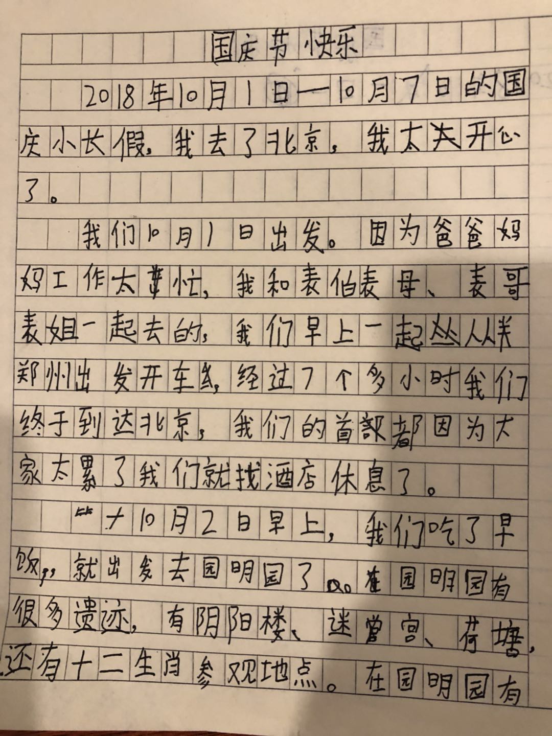 国庆节快乐 热589 类别:叙事 发表时间:2018-10-07 15:15 已有 590 次阅读 指导老师:eqr4 所属学校:荥阳市第九小学