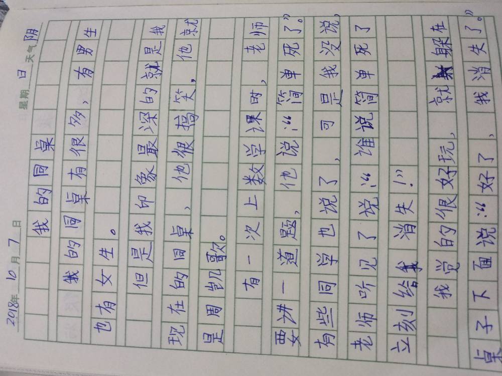 我的同桌 热387 类别:写人 发表时间:2018-10-07 22:29 已有 388 次阅读 指导老师:苏红霞 所属学校:荥阳市第九小学