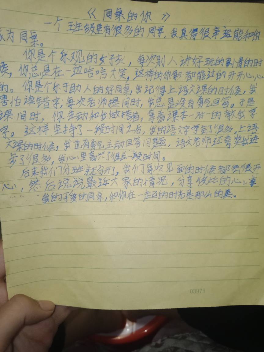 同桌的你 热136 类别:记叙 发表时间:2018-10-07 21:06 已有 137 次阅读 指导老师:马凯 所属学校:荥阳市第九小学