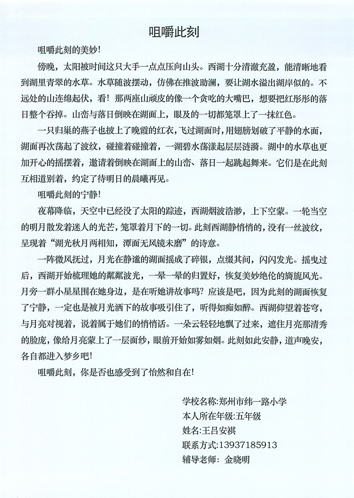 咀嚼此刻 热601 类别:原创 发表时间:2021-07-30 17:43 已有 602 次阅读 指导老师:金晓明 所属学校:金水区纬一路小学