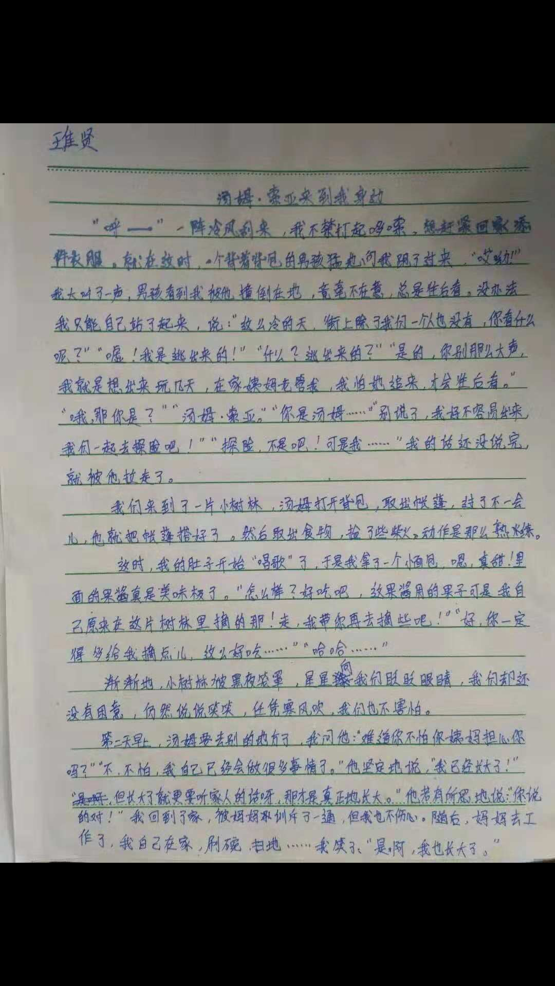 汤姆.索亚来到我身边 热315 类别:叙事 发表时间:2018-10-08 14:25 已有 315 次阅读 指导老师:侯芽 所属学校:荥阳市第九小学