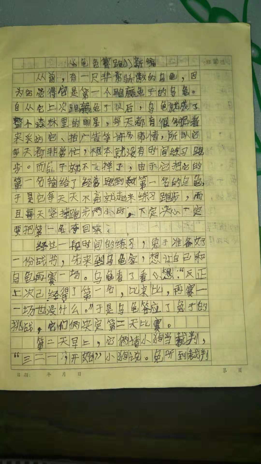 《龟兔赛跑》新编 热819 类别:原创 发表时间:2018-10-09 10:31 已有 820 次阅读 指导老师:周玉欣 所属学校:经开区锦凤小学