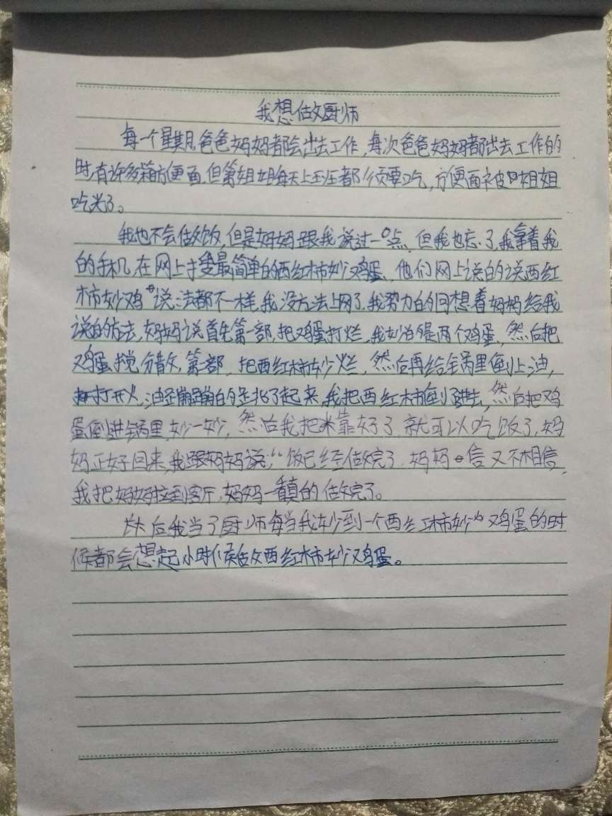 .我想做厨师 热352 类别:其他 发表时间:2018-10-08 18:52 已有 353 次阅读 指导老师:张艳玲 所属学校:荥阳市第九小学