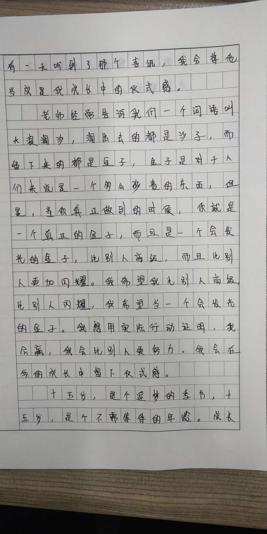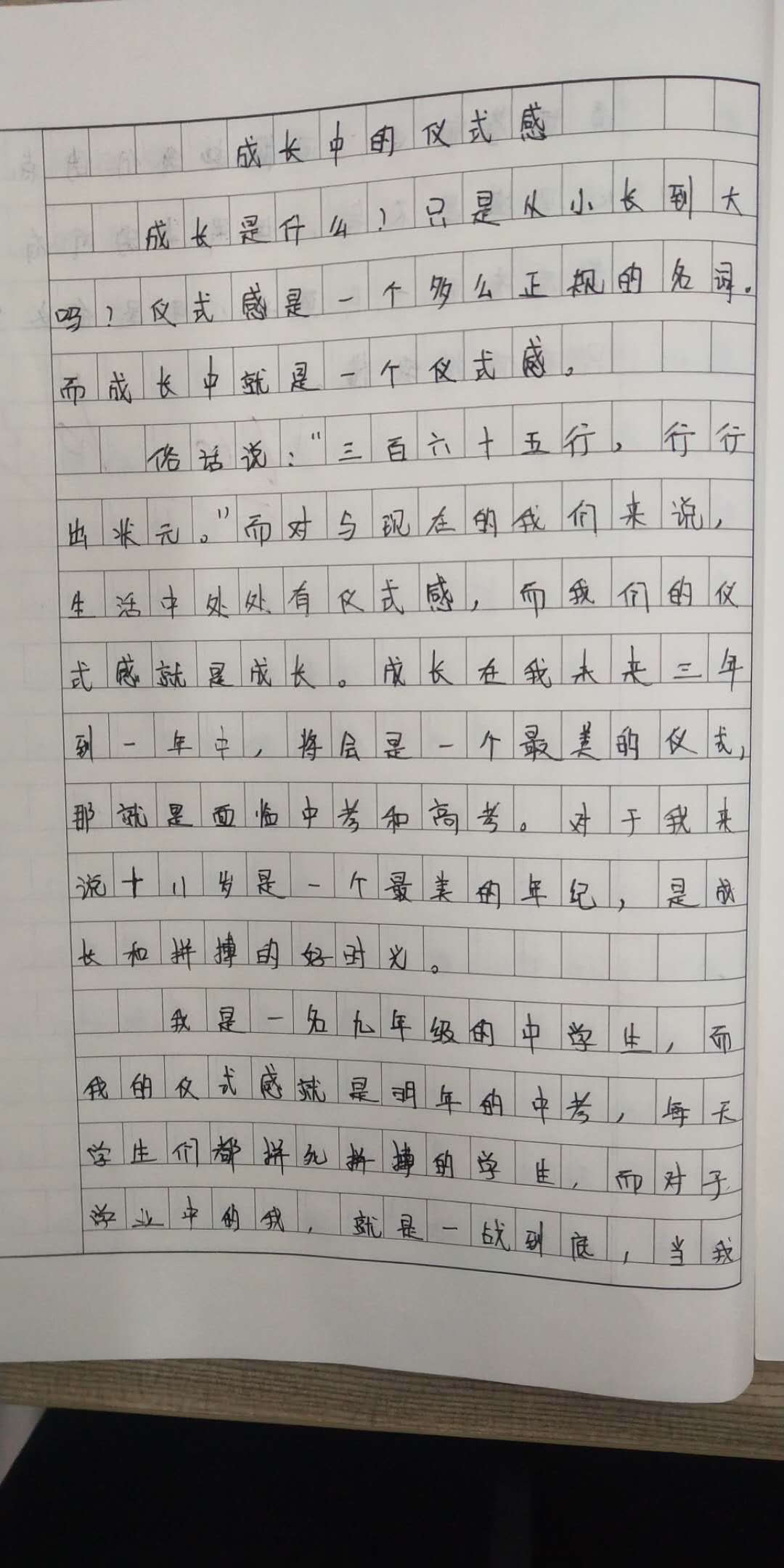 成长中的仪式感 热642 类别:原创 发表时间:2018-10-09 21:35 已有 643 次阅读 指导老师:赵培金 所属学校:郑州十一学校