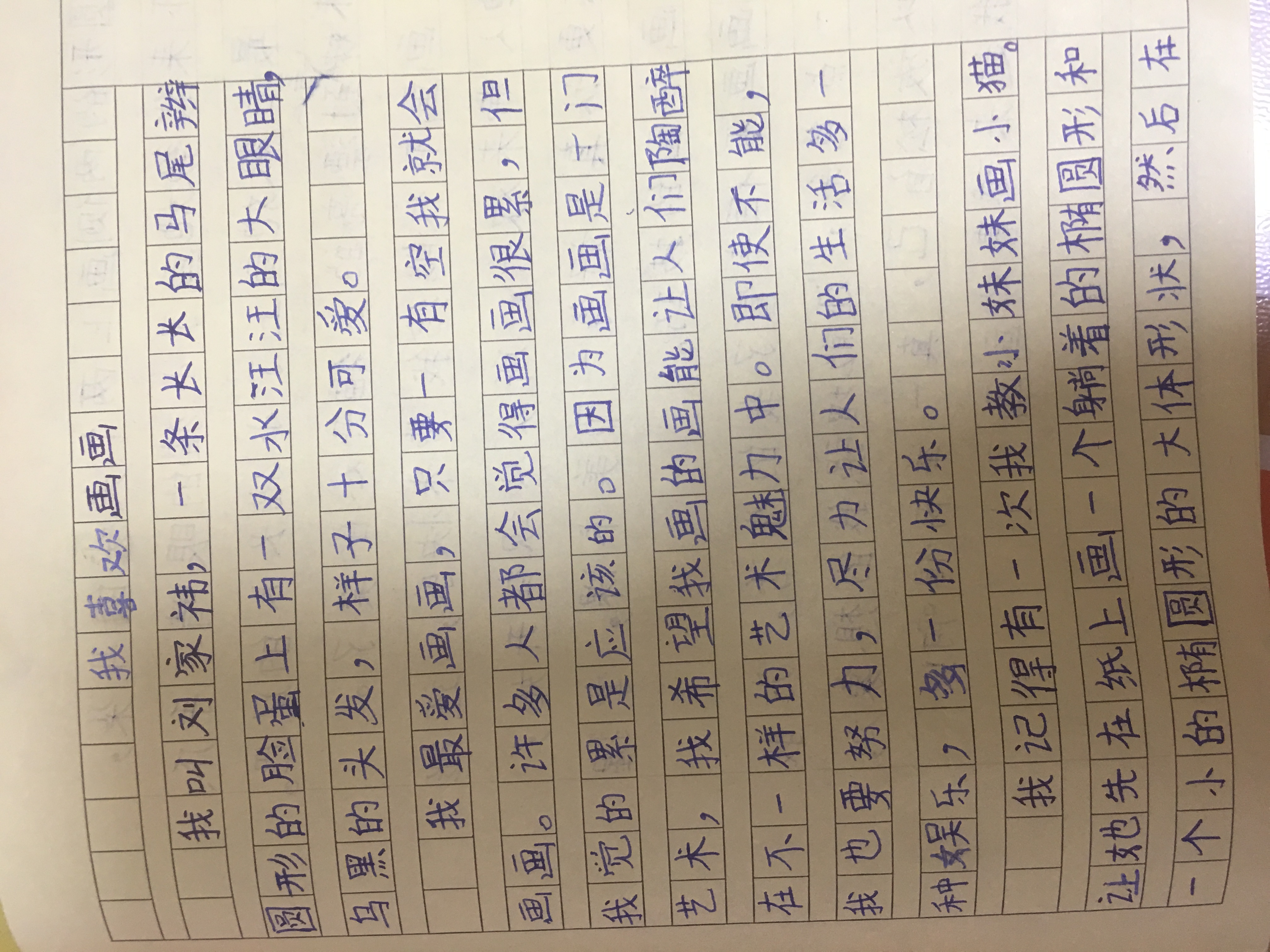 我喜欢画画 热326 类别:其他 发表时间:2018-10-10 01:01 已有 327 次阅读 指导老师:乔丽亚 所属学校:经济技术开发区外国语小学