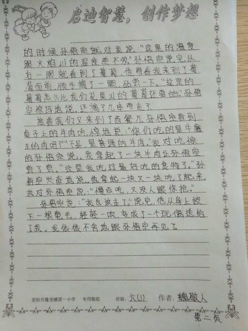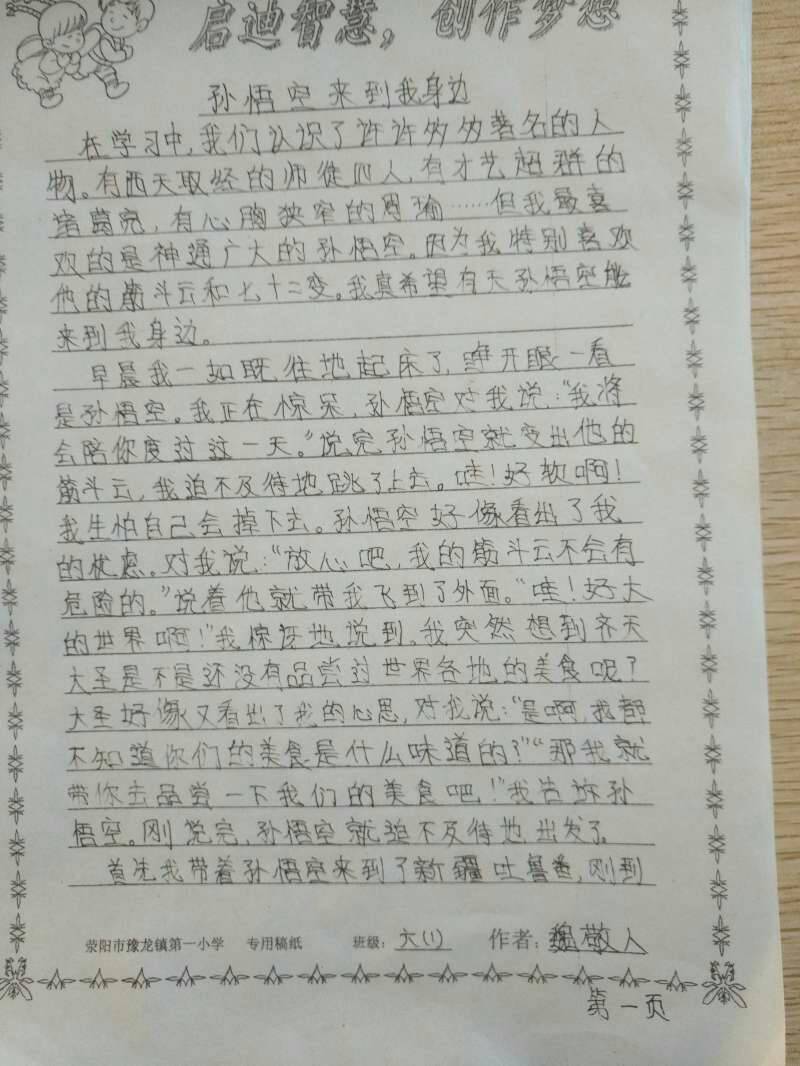 孙悟空来到我身边 热1034 类别:原创 发表时间:2018-10-10 10:10 已有 1035 次阅读 指导老师:宋朝阳‘ 所属学校:荥阳市豫龙镇第一小学