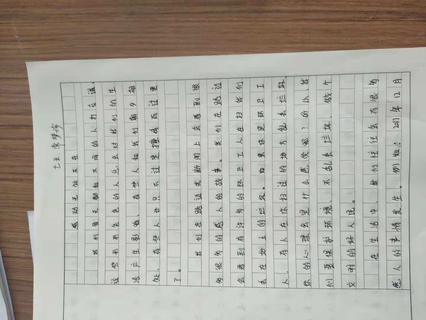 感动无处不在 热397 类别:叙事 发表时间:2018-10-10 12:10 已有 398 次阅读 指导老师:杜鹃 所属学校:郑州十一学校
