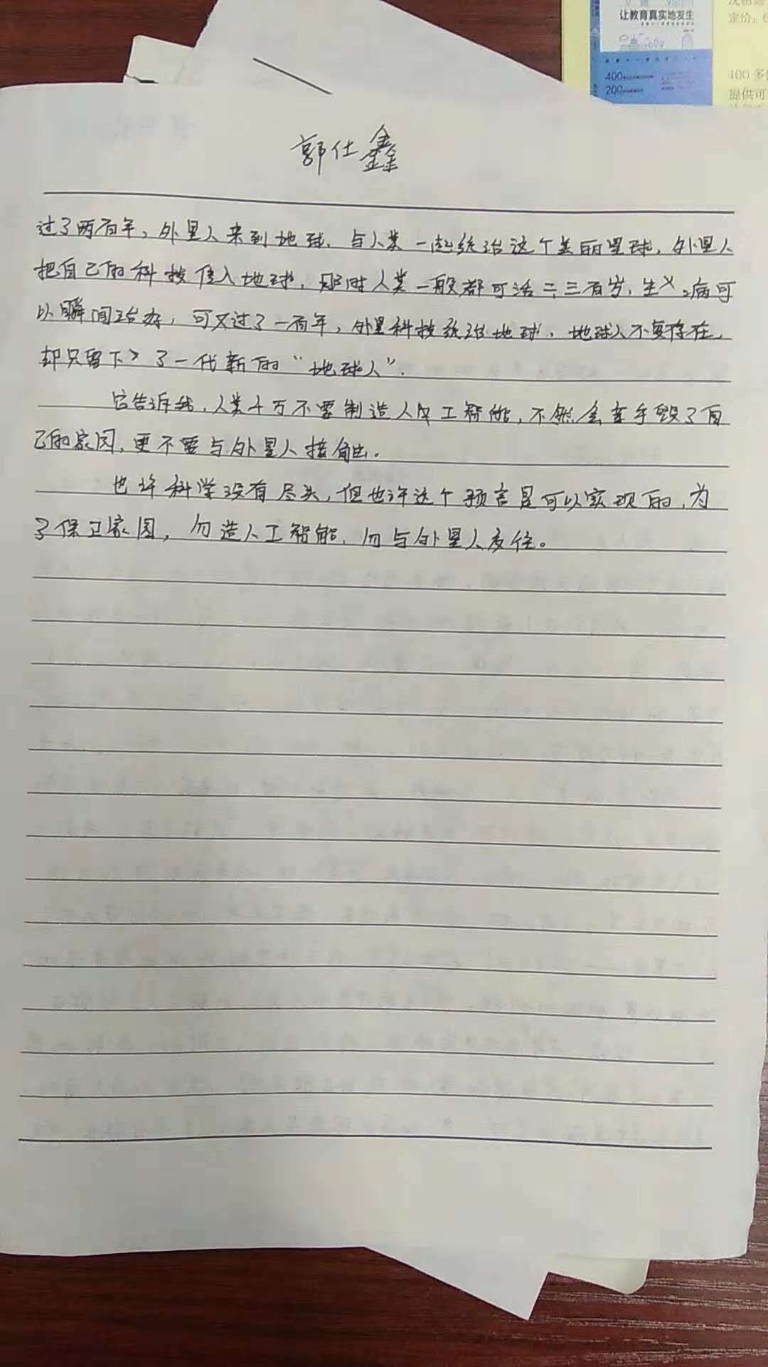 遇见未来人 热1098 类别:原创 发表时间:2018-10-10 12:15 已有 1099 次阅读 指导老师:王园利 所属学校:郑州十一学校