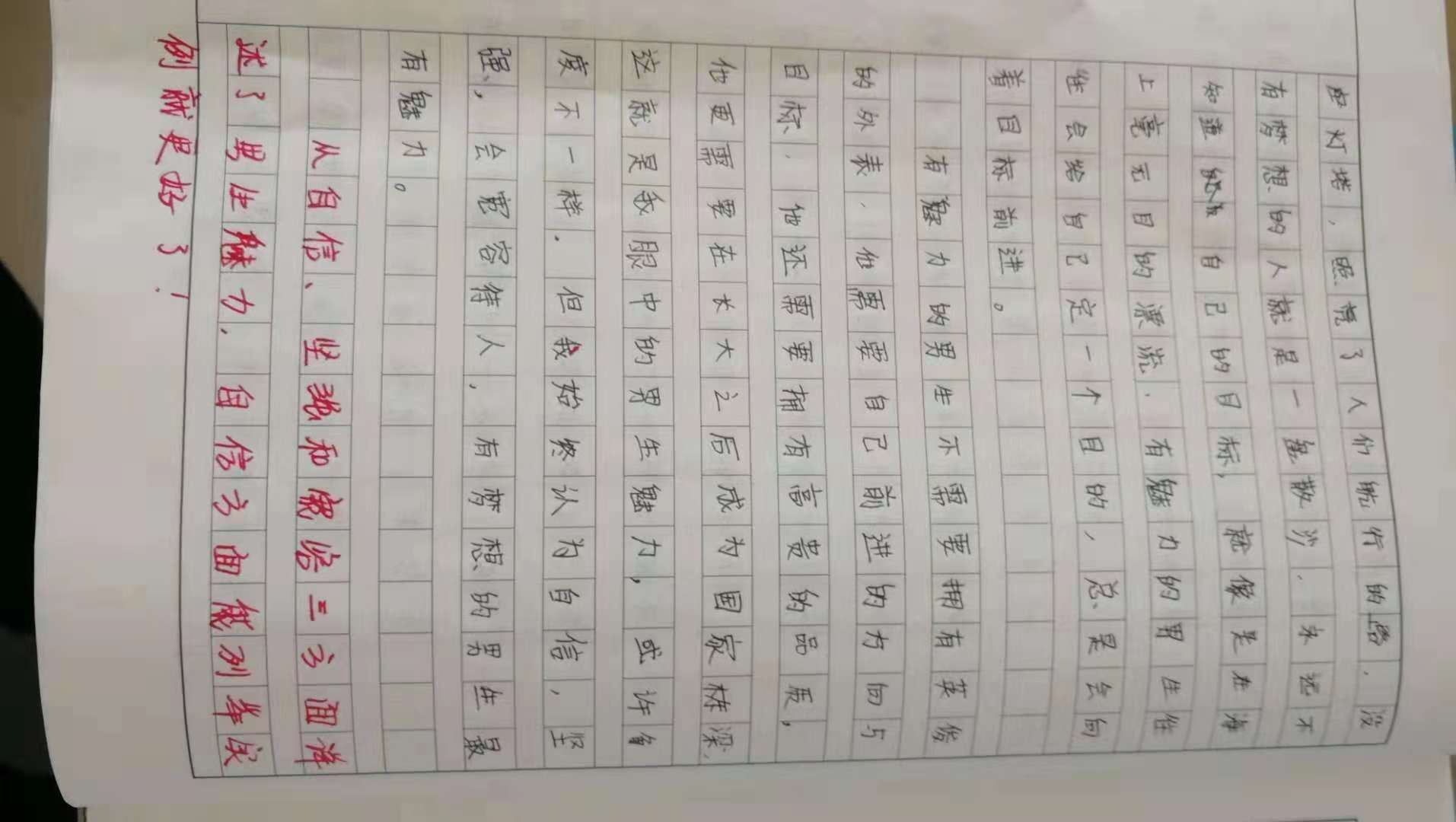 我眼中的男生魅力 热564 类别:写人 发表时间:2018-10-10 21:05 已有 565 次阅读 指导老师:袁野 所属学校:郑州十一学校