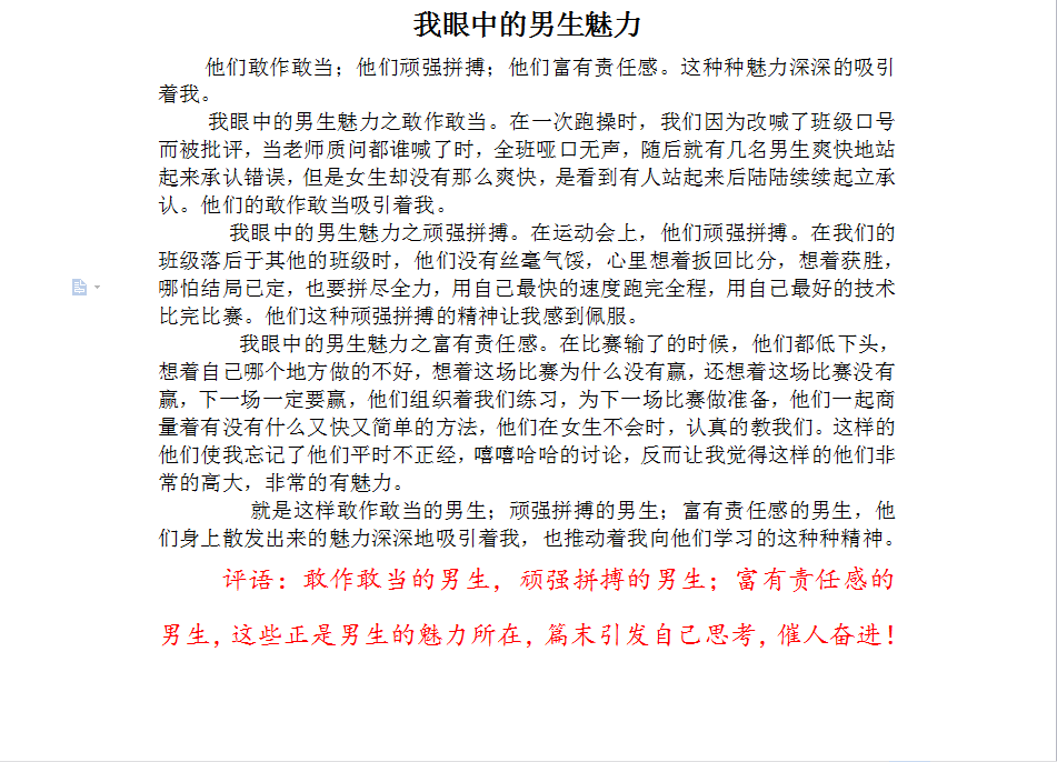 我眼中的男生魅力 热820 类别:写人 发表时间:2018-10-10 14:10 已有 821 次阅读 指导老师:李书红 所属学校:郑州十一学校