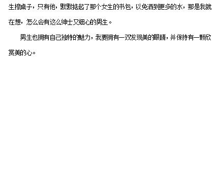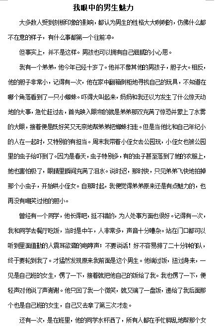 我眼中的男生魅力 热490 类别:写人 发表时间:2018-10-10 14:53 已有 491 次阅读 指导老师:王园利 所属学校:郑州十一学校