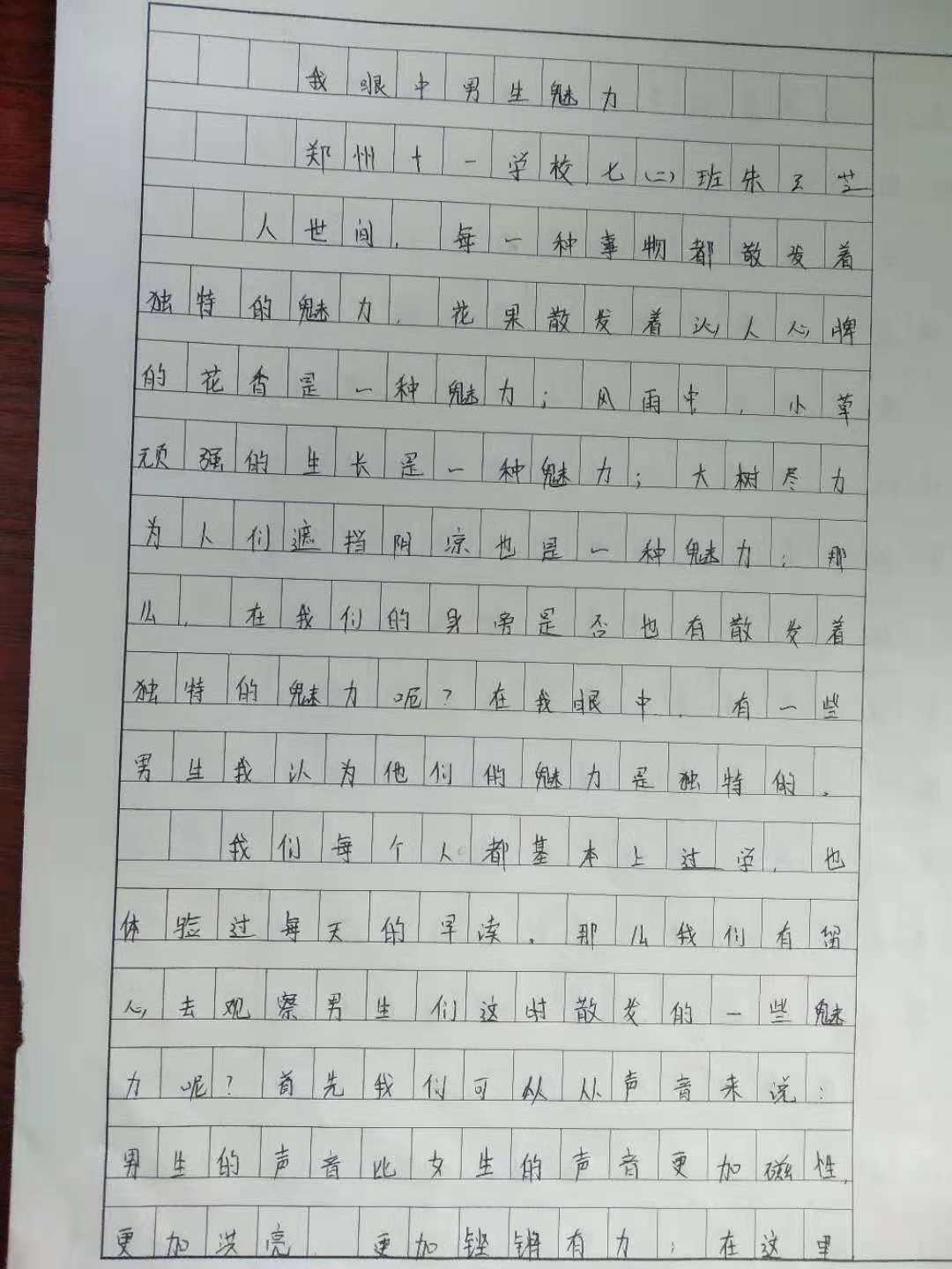 《我眼中的女生魅力》 热700 类别:原创 发表时间:2018-10-10 14:48 已有 701 次阅读 指导老师:朱刘霞 所属学校:郑州十一学校