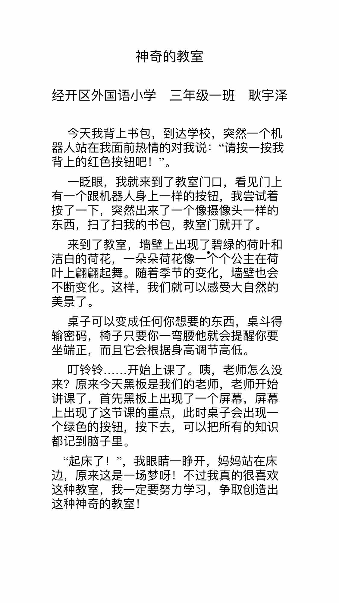 神奇的教室 热646 类别:原创 发表时间:2018-10-10 15:39 已有 647 次阅读 指导老师:朱梦琳 所属学校:经济技术开发区外国语小学