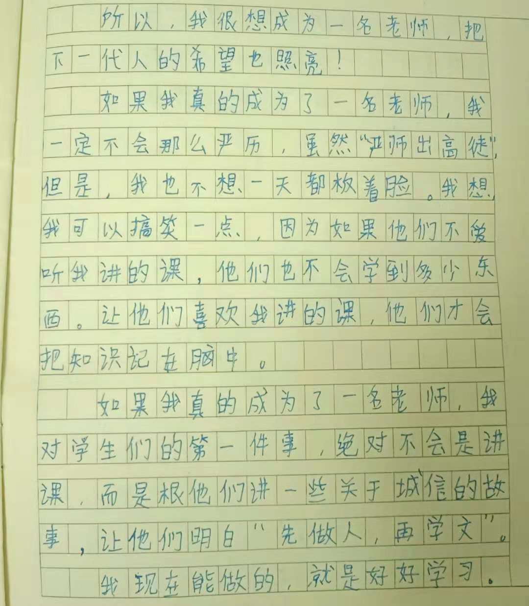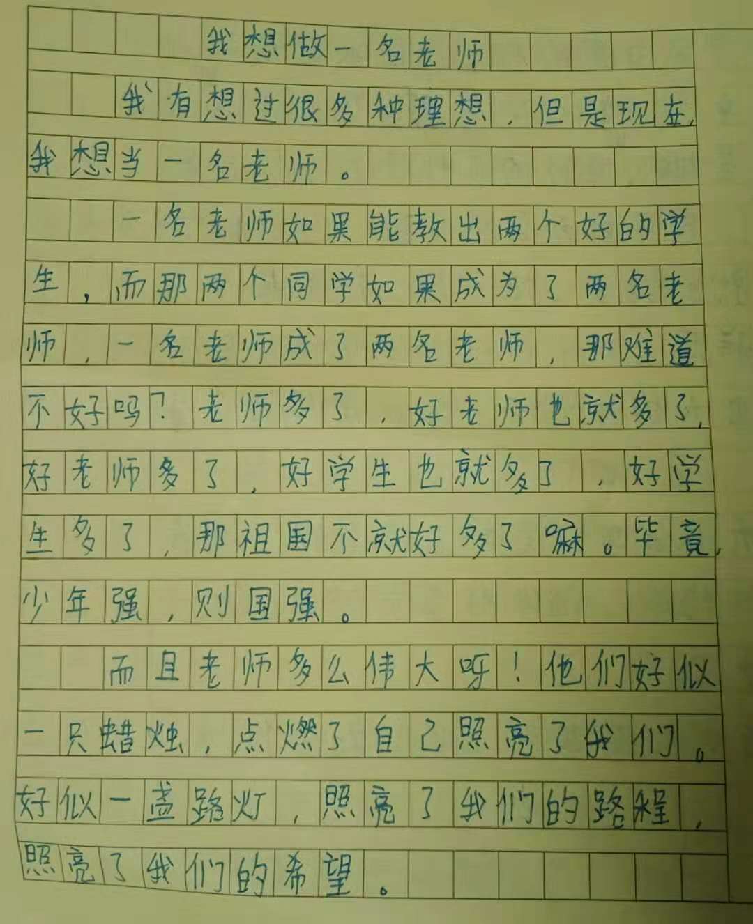 我想做一名老师 热642 类别:记叙 发表时间:2018-10-10 20:34 已有 643 次阅读 指导老师:张浩 所属学校:郑州市上街区马固小学