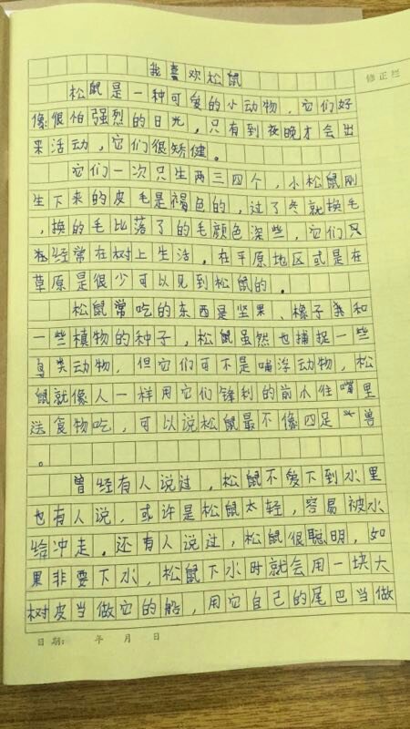 我喜欢松鼠 热876 类别:其他 发表时间:2018-10-10 21:49 已有 877 次阅读 指导老师:张婕 所属学校:经济技术开发区外国语小学