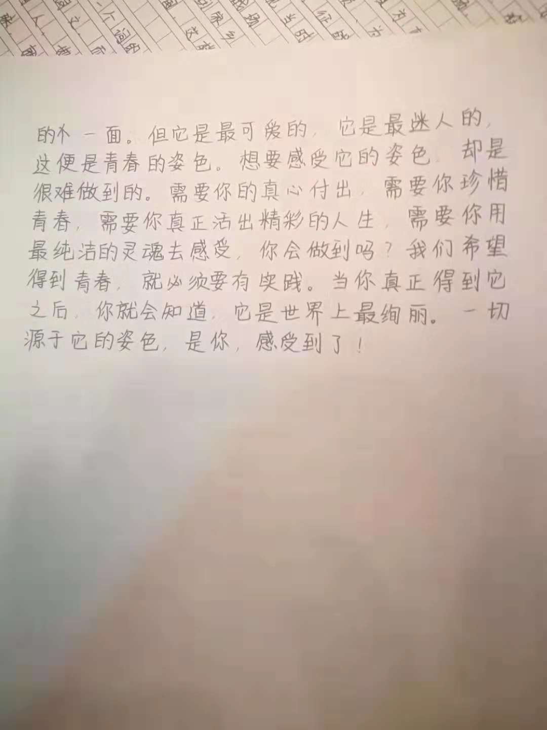 青春的姿色 热535 类别:抒情 发表时间:2018-10-11 09:17 已有 536 次阅读 指导老师:赵晓静 所属学校:新密市金凤路初级中学