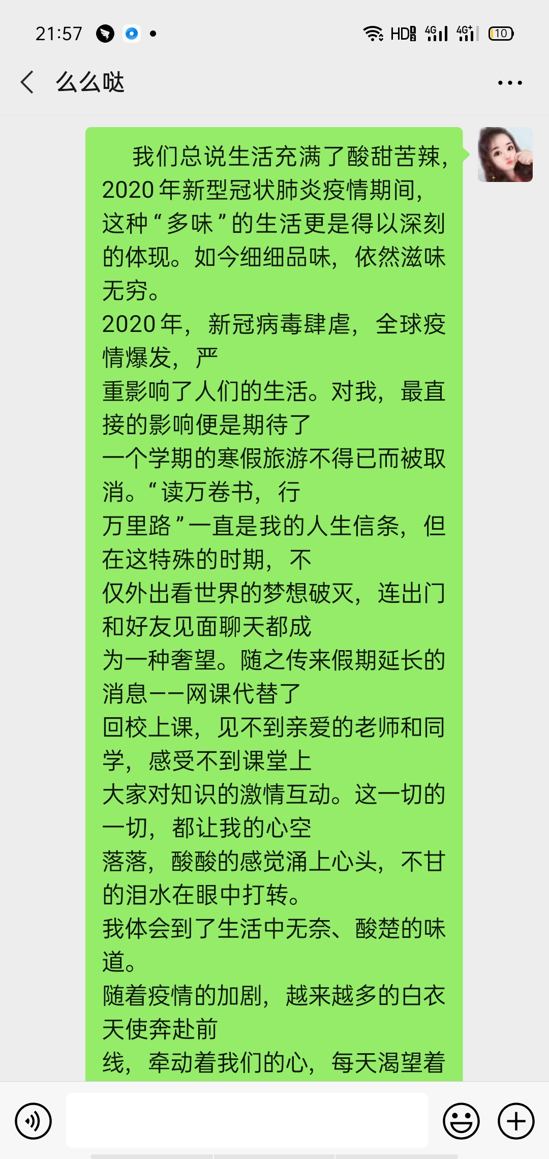 疫情期间的“多味”生活 热592 类别:其他 发表时间:2020-10-13 22:04 已有 593 次阅读 指导老师:孟献华 所属学校:新密市金凤路初级中学