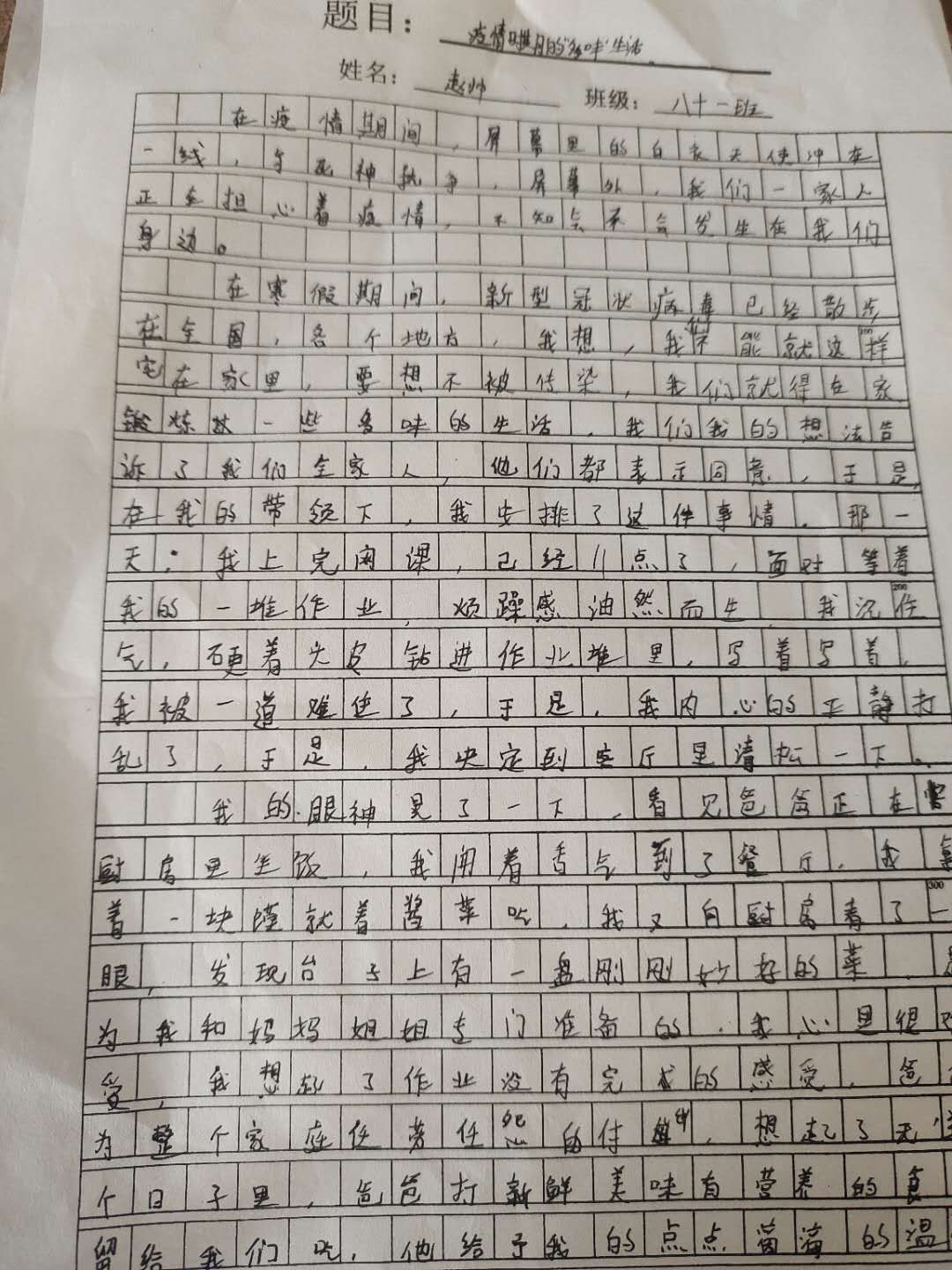 “疫情”时期的“多味”生活 热434 类别:记叙 发表时间:2020-10-18 16:46 已有 435 次阅读 指导老师:候变变 所属学校:新密市市直一初中