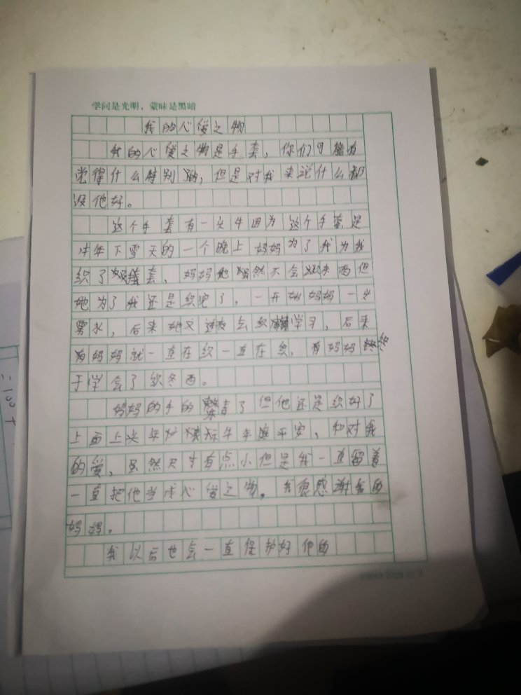我的心爱之物 热412 类别:叙事 发表时间:2021-09-13 19:10 已有 413 次阅读 指导老师:马慧娟 所属学校:中牟县平安路学校