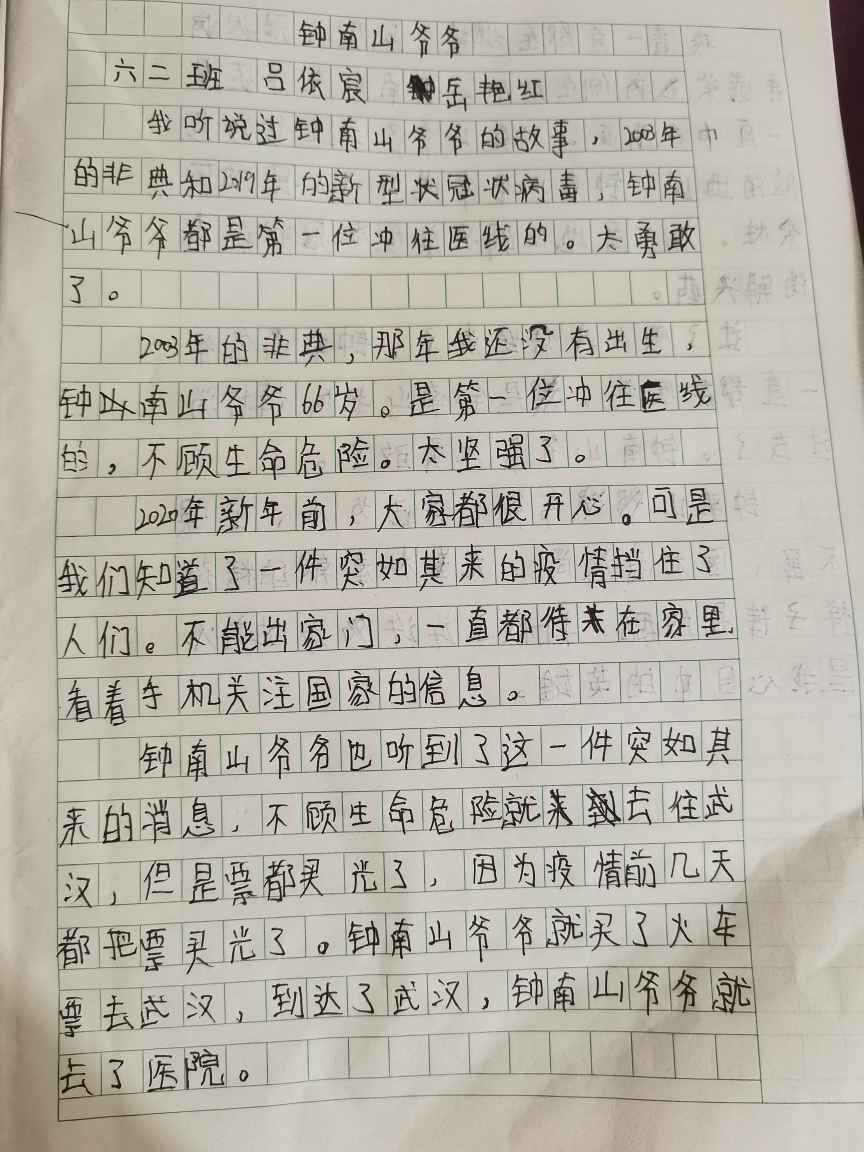 钟南山爷爷 热522 类别:写人 发表时间:2021-09-15 20:15 已有 523 次阅读 指导老师:岳艳红 所属学校:中牟县平安路学校