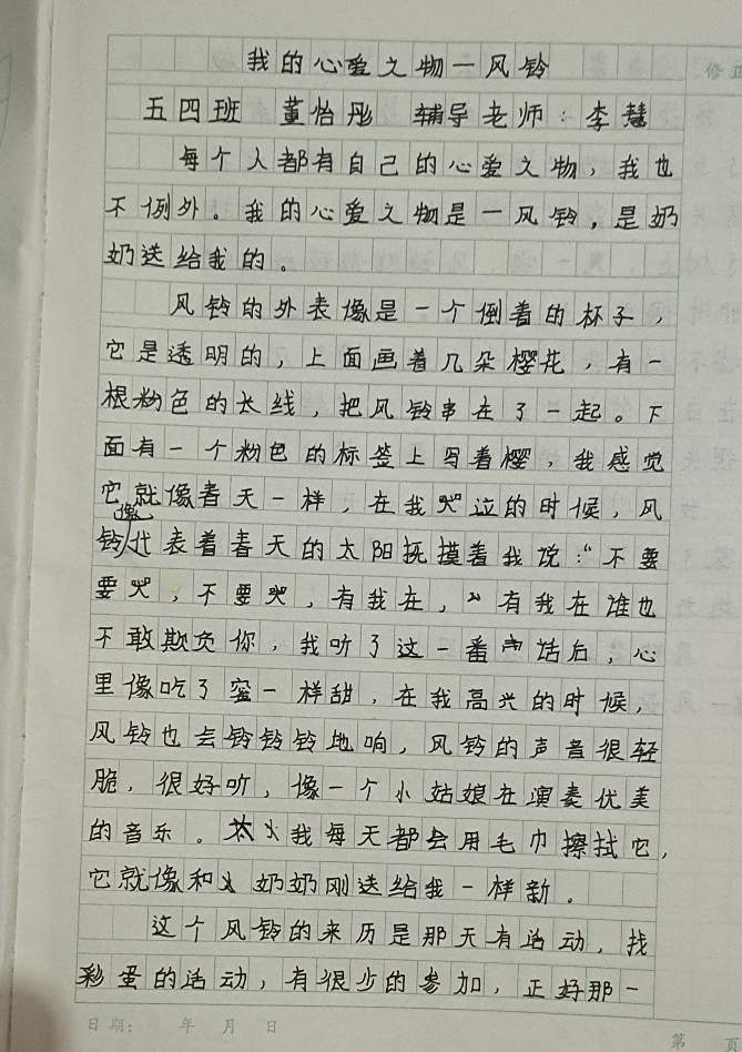 我的心爱之物-风铃 热304 类别:状物 发表时间:2021-09-13 18:47 已有 305 次阅读 指导老师:李慧 所属学校:中牟县平安路学校