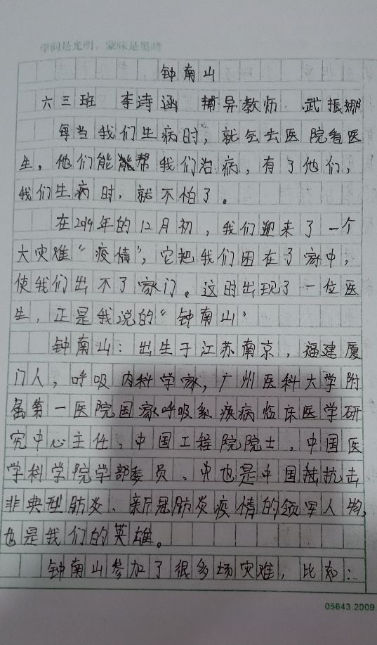 钟南山 热358 类别:写人 发表时间:2021-09-10 18:36 已有 360 次阅读 指导老师:武振娜 所属学校:中牟县平安路学校