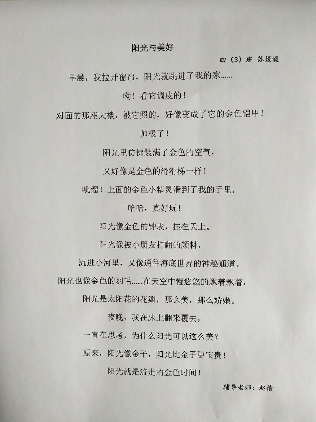 《阳光与美好》 热1194 类别:其他 发表时间:2020-06-23 13:32 已有 1194 次阅读 指导老师:赵倩 所属学校:华中师范大学附属高新区荣邦城小学