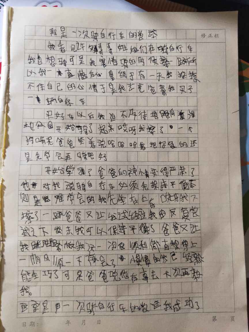 那是一次骑自行的尝试 热631 类别:叙事 发表时间:2021-09-14 13:36 已有 632 次阅读 指导老师:贺孟霞 所属学校:中牟县平安路学校
