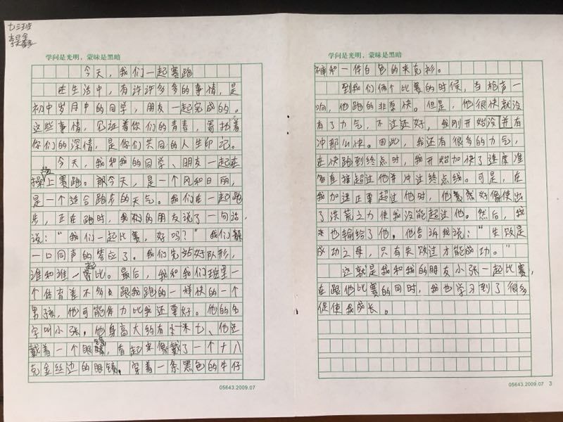 今天,我们一起赛跑 热891 类别:记叙 发表时间:2019-06-06 21:02 已有 891 次阅读 指导老师:李梦珂 所属学校:中牟县平安路学校