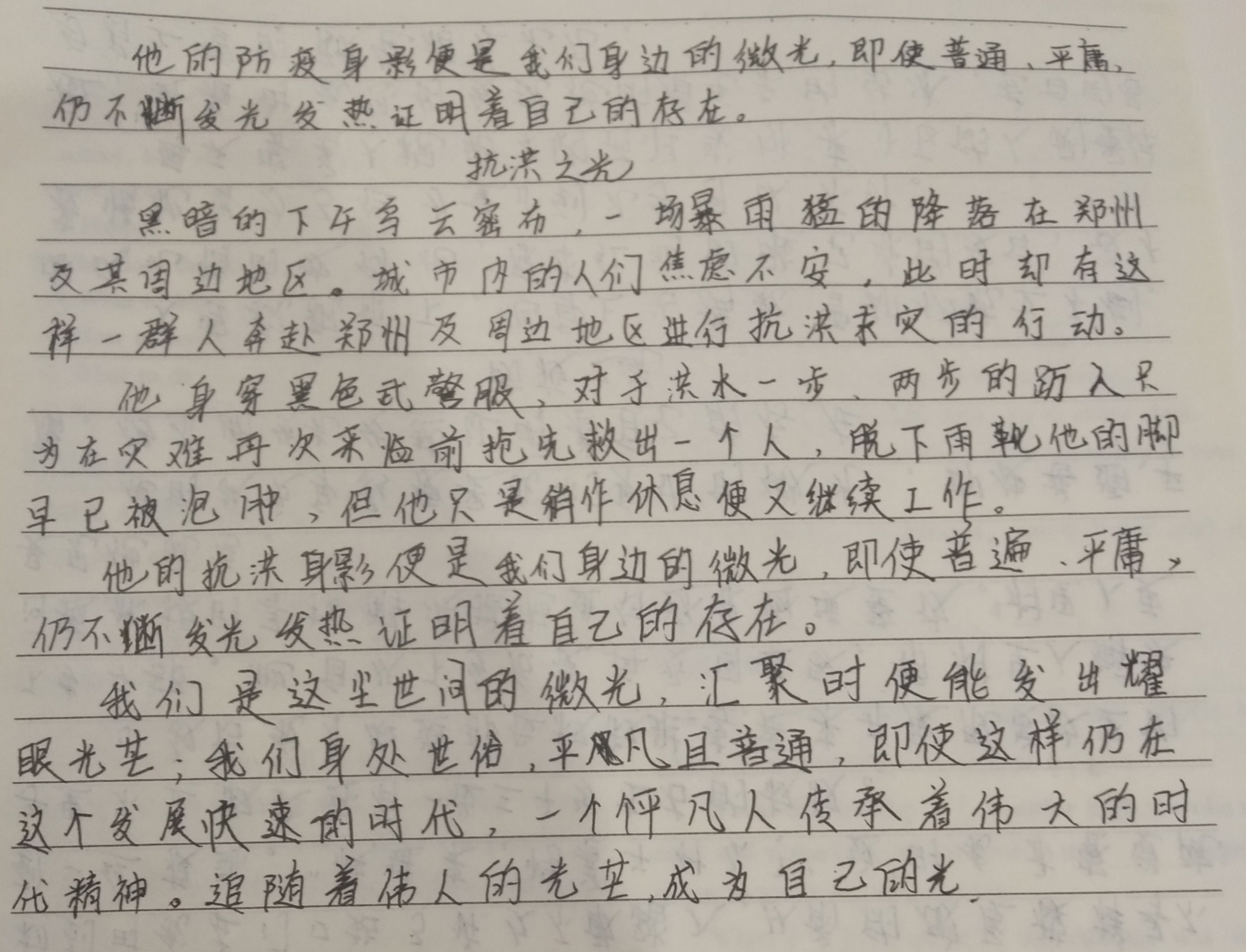 微光 热603 类别:记叙 发表时间:2021-09-05 18:48 已有 604 次阅读 指导老师:王军峰 所属学校:河南省新郑市第一中学