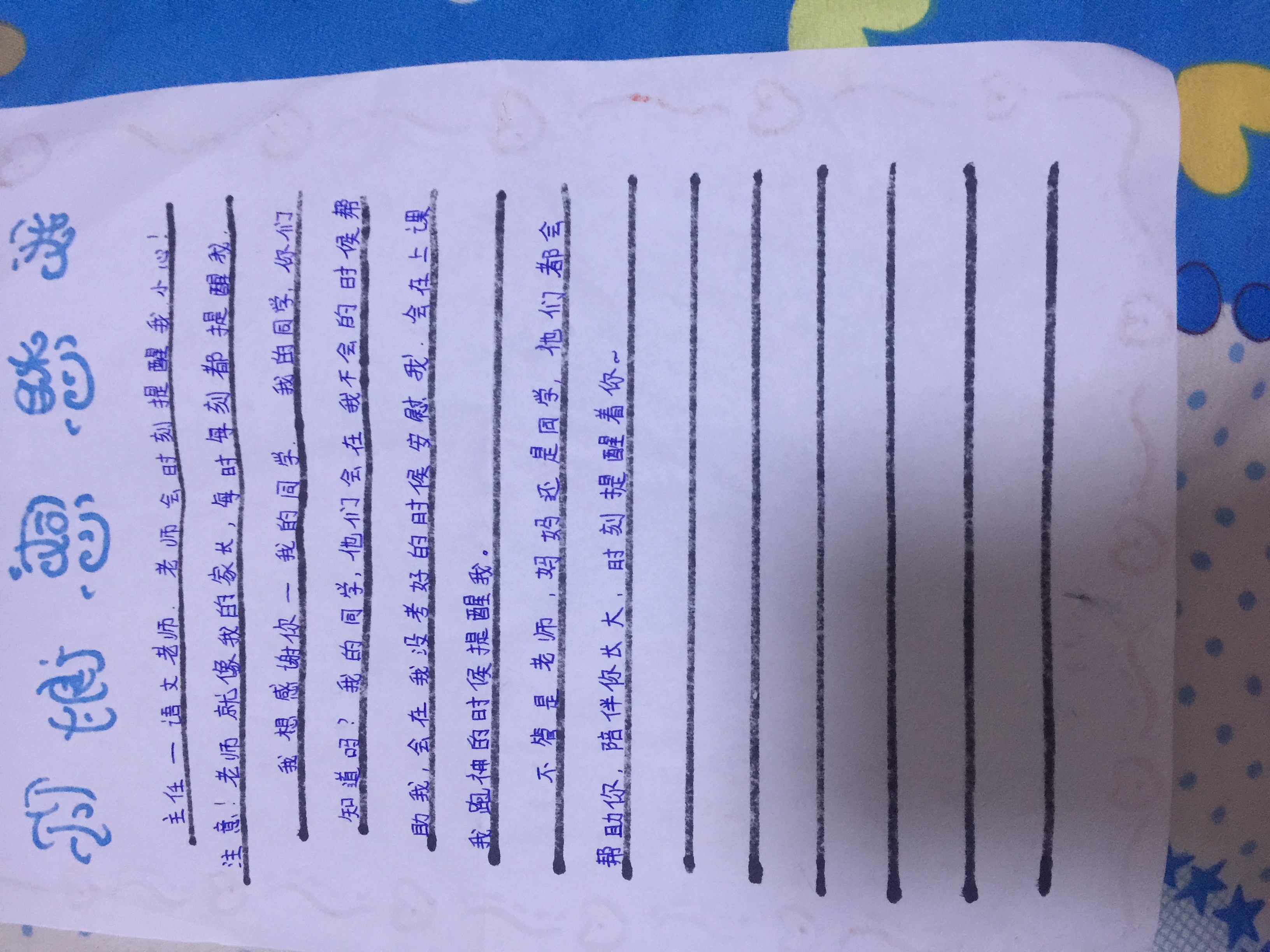 我想感谢你 热392 类别:叙事 发表时间:2020-06-12 20:27 已有 393 次阅读 指导老师:肖华周 所属学校:新郑市第二实验小学