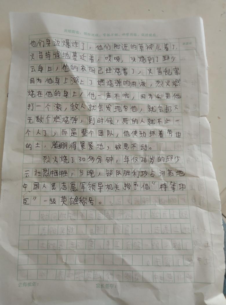 抗日英雄邱少云 热805 类别:写人 发表时间:2021-09-12 14:39 已有 806 次阅读 指导老师:岳艳红 所属学校:中牟县平安路学校