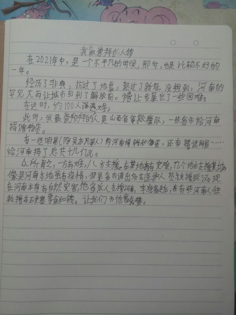 我最崇拜的人物 热352 类别:其他 发表时间:2021-07-30 16:13 已有 353 次阅读 指导老师:刘丽晓 所属学校:登封市书院河路小学