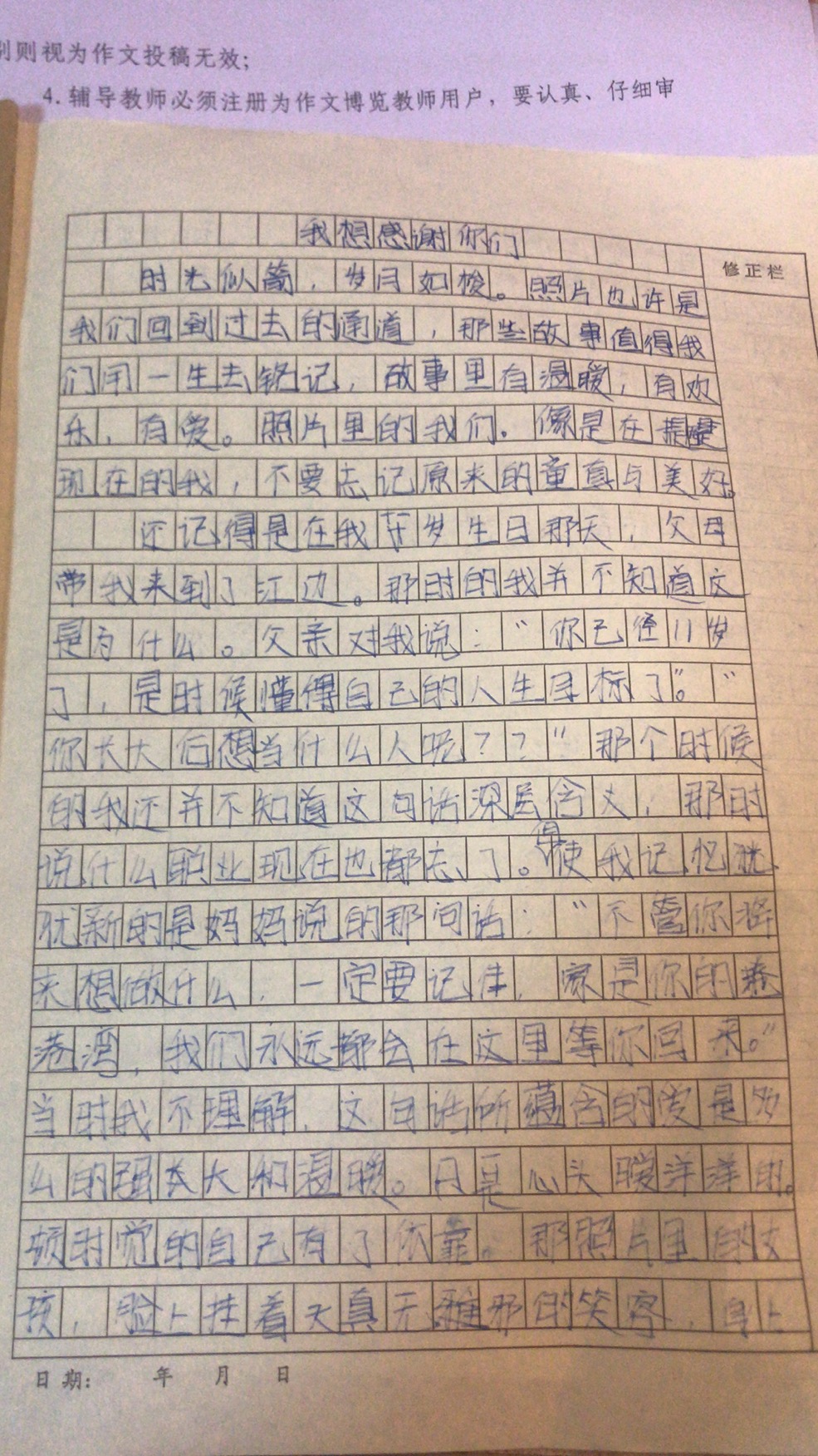 我想感谢你 热809 类别:记叙 发表时间:2020-08-18 20:35 已有 810 次阅读 指导老师:王红梅 所属学校:金水区文化路第二小学
